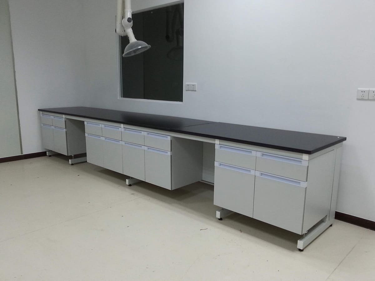 b、實心理化板采用127mm進(jìn)口實心理化板,四周邊緣加厚至254mm,邊緣做圓角磨邊處理,符合人體工學(xué)設(shè)計,具有耐酸堿、耐腐蝕、耐沖擊、韌性強(qiáng)等特點。