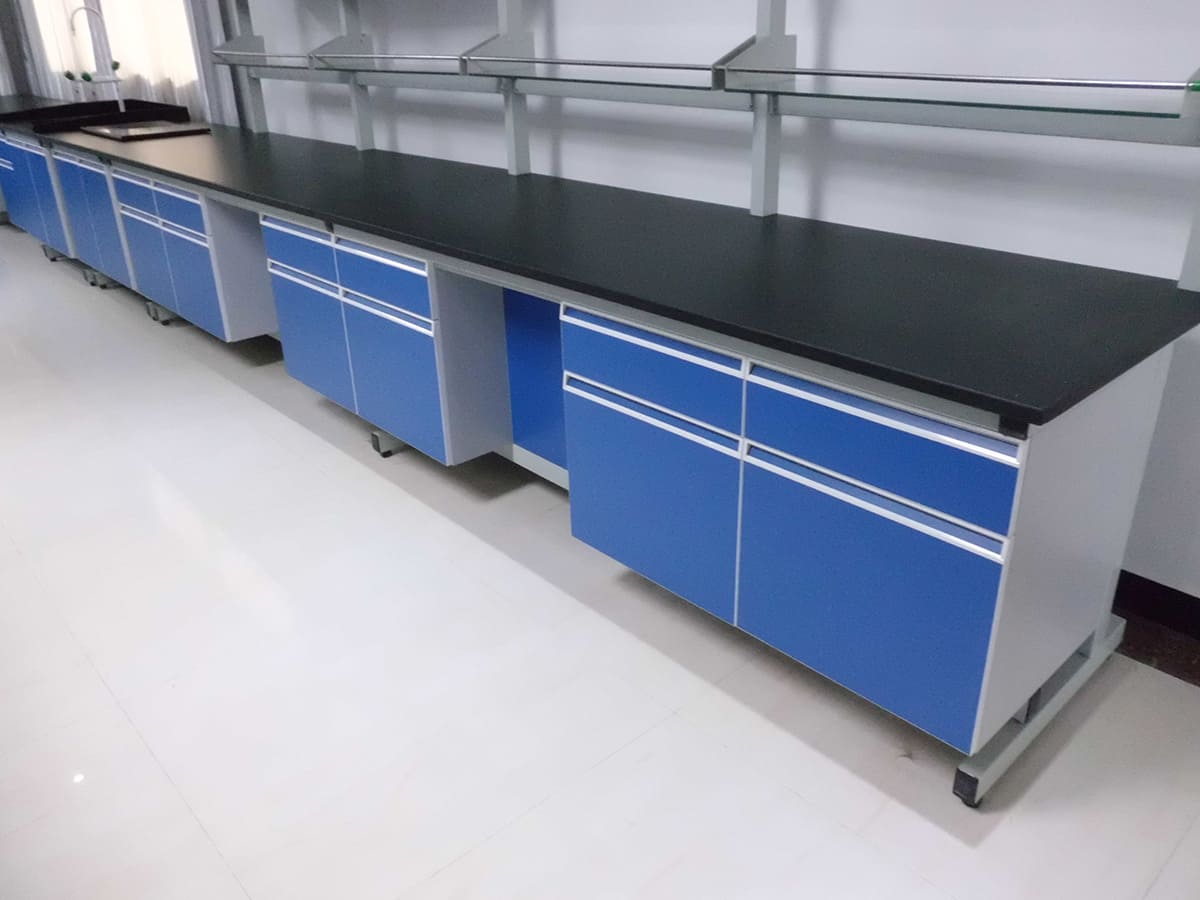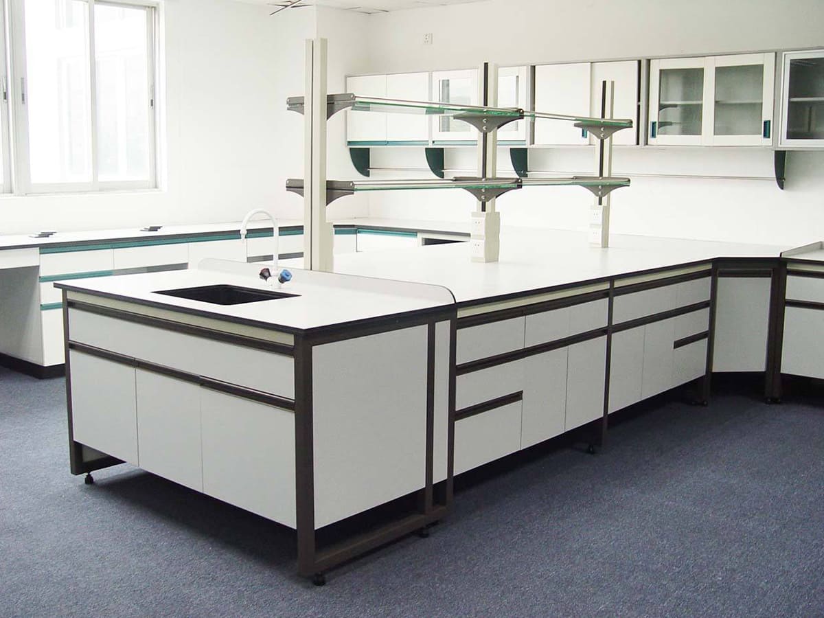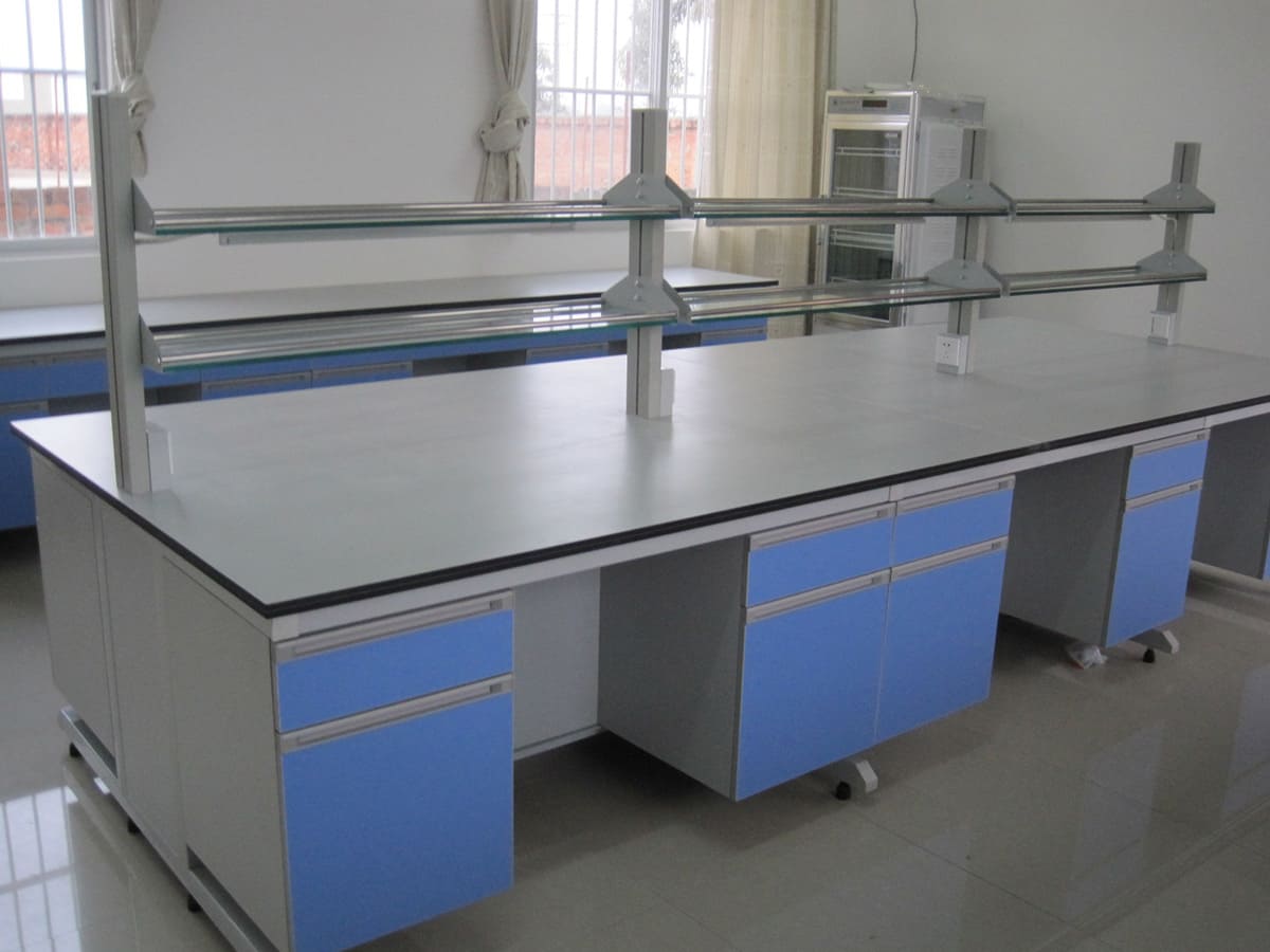 a、理化貼面板采用25mm厚的國產(chǎn)優(yōu)質(zhì)環(huán)保型中纖板為基材的AAA級中密度板,表面粘壓耐酸堿的進(jìn)口0.9mm厚 Chemsurf理化板,臺面四周斷面經(jīng)國產(chǎn)優(yōu)質(zhì)20mm厚PVC封邊防水處理,外表美觀、光滑。